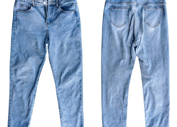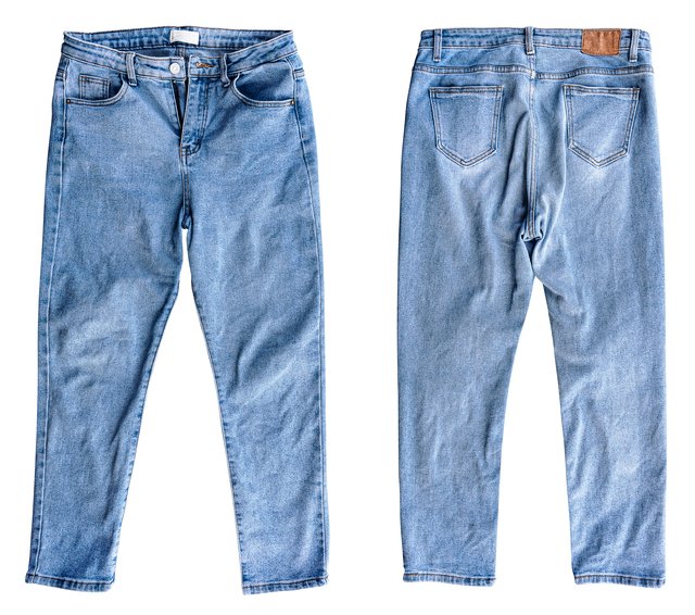 Jeans isolated on white, denim pants isolated, folded blue jeans isolated on white, summer clothes, cloth element mock up
